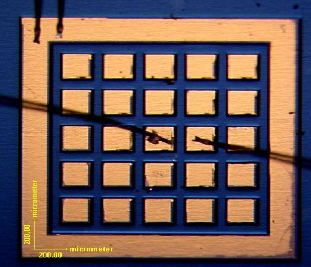 Fig. 1: microscope image of a 5x5 pixel array of GaAs detectors.