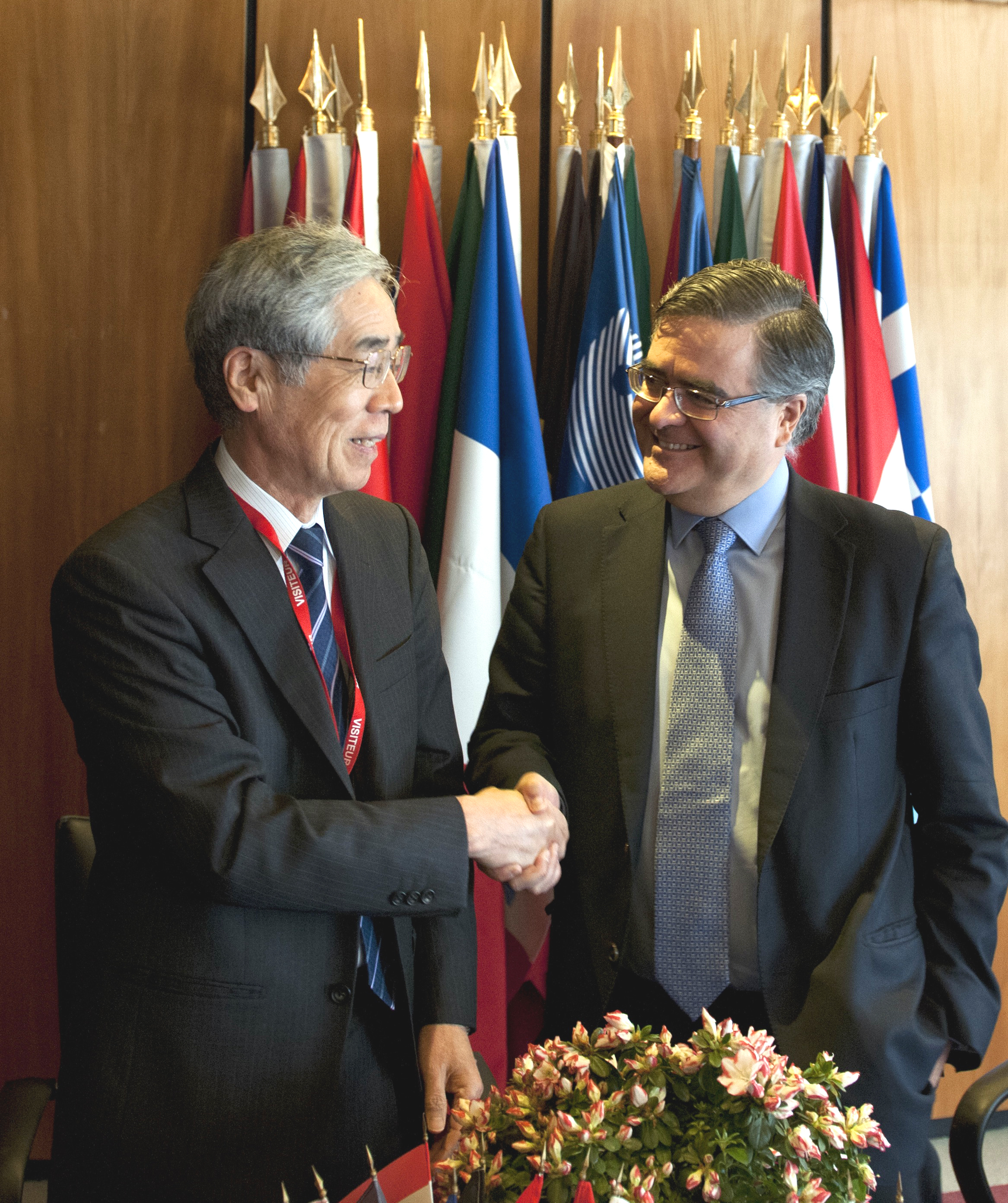 An agreement for cooperation on the JAXA Astro-H mission was signed on 16 March 2012 by Prof. Alvaro Giménez Cañete (right), ESA Director of Science and Robotic Exploration, and Prof. Junjiro Onoda, Director General of the Japanese Institute of Space and Astronautical Science.