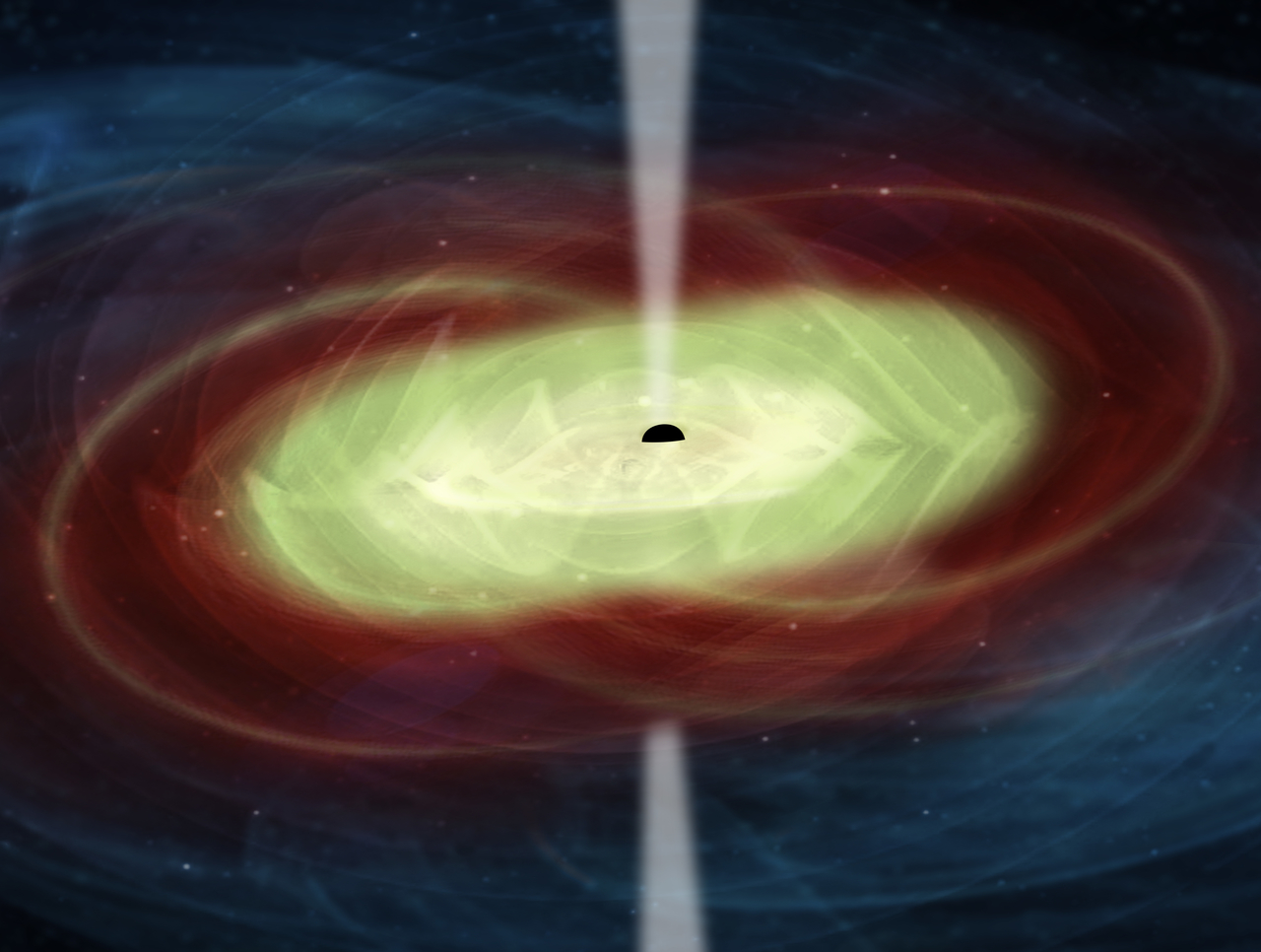 Artist's impression of the aftermath of a merger between two supermassive black holes during a galaxy collision.