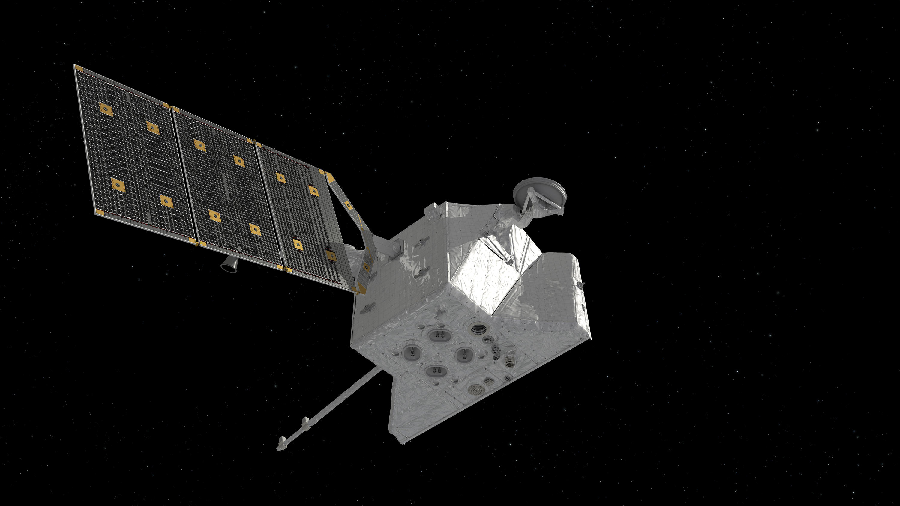 Artist's impression of the Mercury Planetary Orbiter after ejecting the Mercury Magnetospheric Orbiter and sunshield. The down-facing side of the spacecraft in this orientation – and the panel that will face Mercury – hosts most of the scientific instruments. Click here for a labelled view of the instruments.
