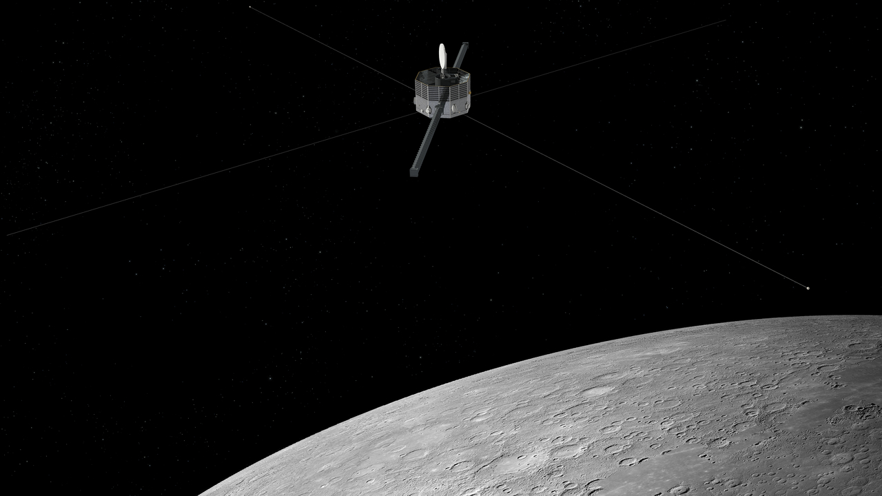 Artist's impression of the Mercury Magnetospheric Orbiter at Mercury.