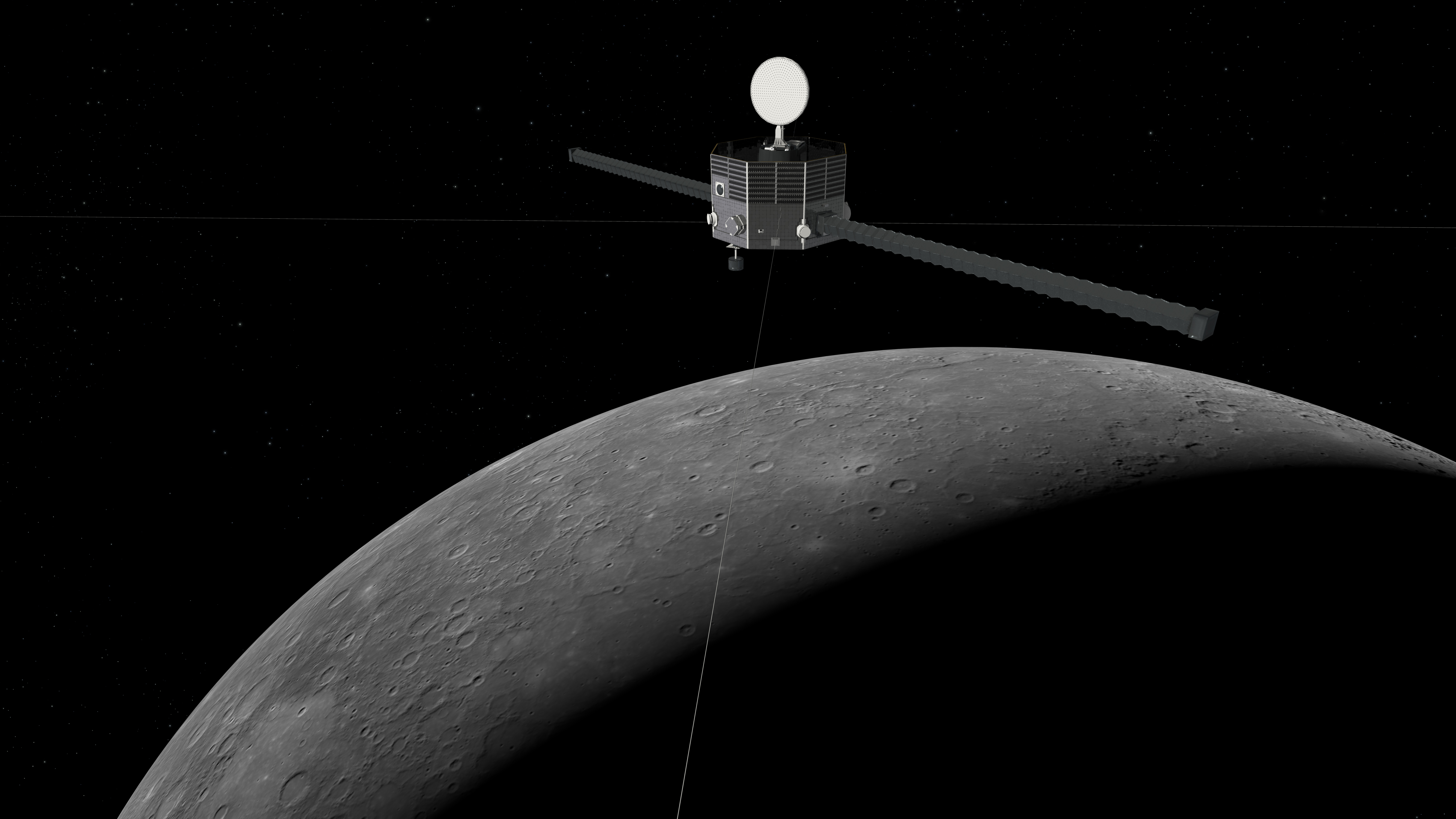 Artist's impression of the Mercury Magnetospheric Orbiter at Mercury.