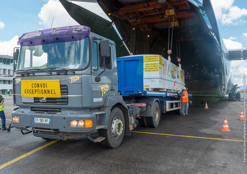 ESA's Mercury Planetary Orbiter (MPO) of the ESA–JAXA BepiColombo mission arrives in Kourou, French Guiana for launch preparations at Europe's Spaceport.