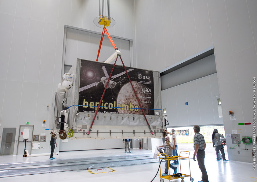The shipping container with ESA's Mercury Planetary Orbiter (MPO) of the ESA–JAXA BepiColombo mission arrives at Europe's Spaceport in Kourou for launch preparations.