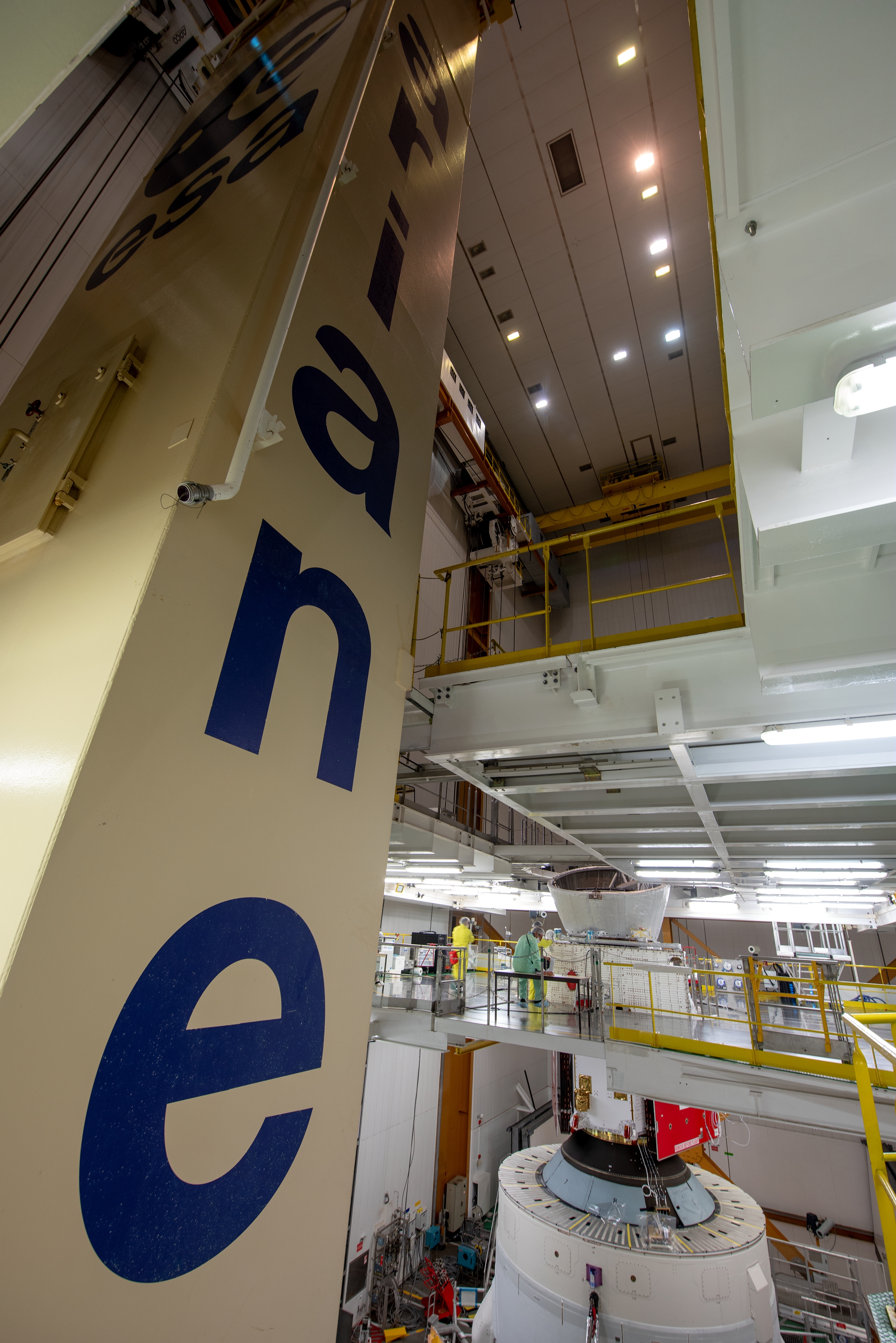 Depicts: Spacecraft stack mounted on the Ariane launcher