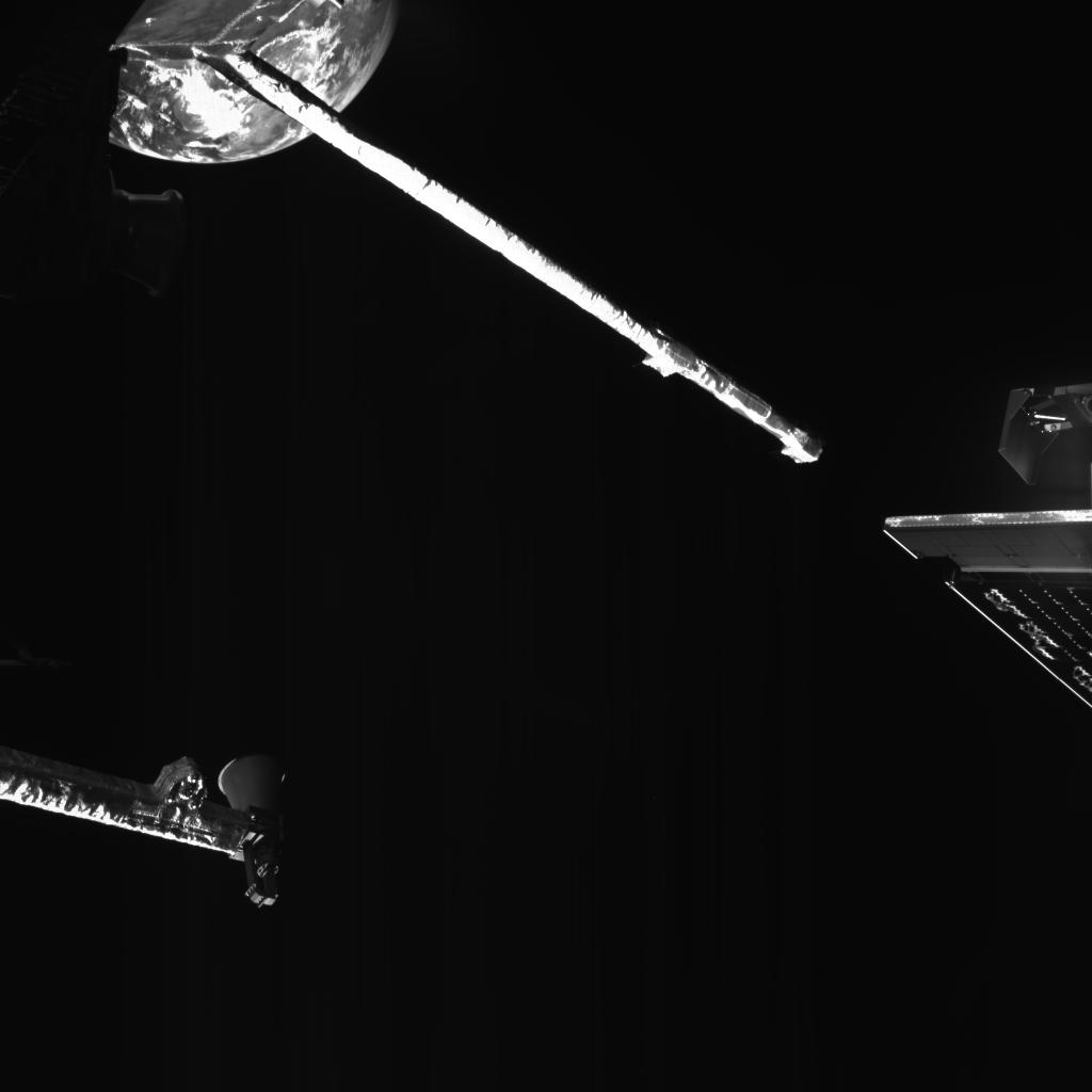 A view of Earth captured by one of the MCAM selfie cameras on board of the European-Japanese Mercury mission BepiColombo, as the spacecraft zoomed past the planet during its first and only Earth flyby. The image was taken at 03:08 UTC on 10 April 2020, shortly before the closest approach, from around 25 000 km away.