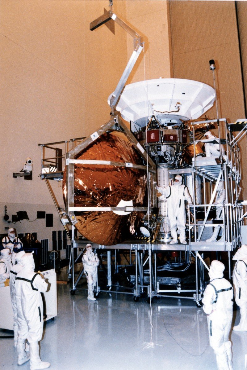 The Huygens Probe is integrated with the Saturn Orbiter in the Payload Hazardous Servicing Facility at NASA's Kennedy Space Center in Florida.