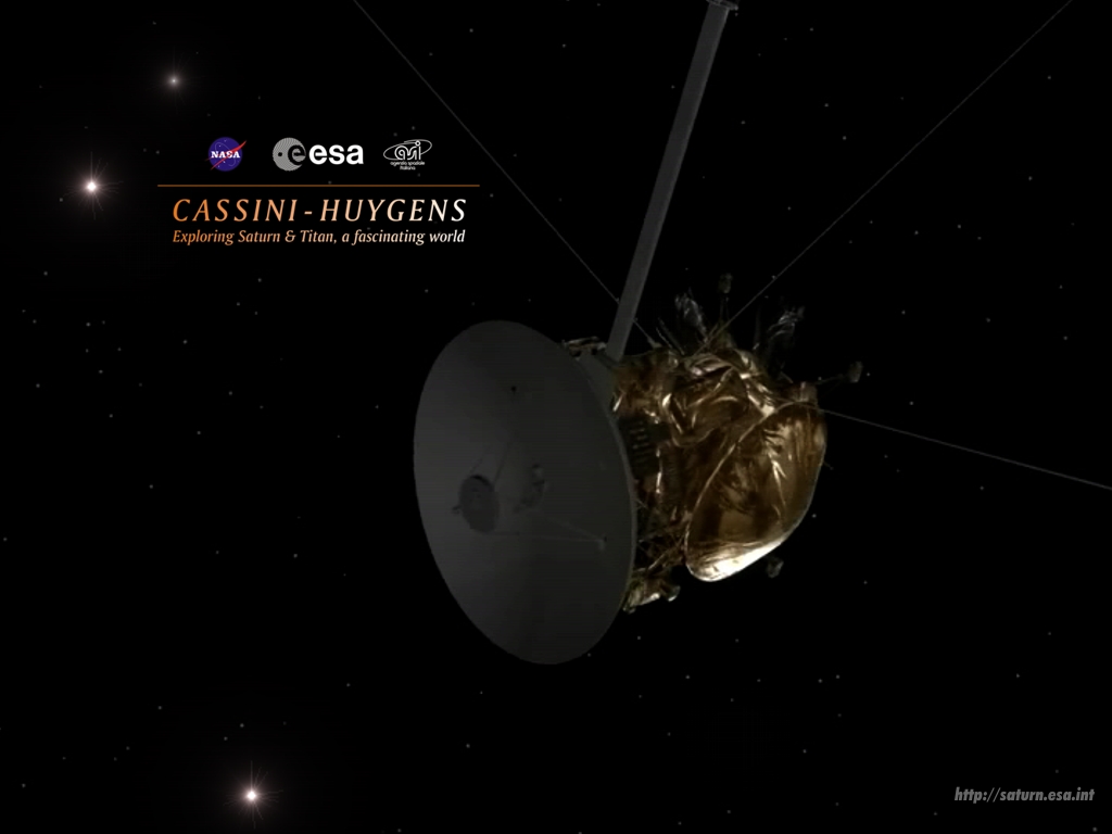 Depicts: Cassini-Huygens exploring Saturn and Titan