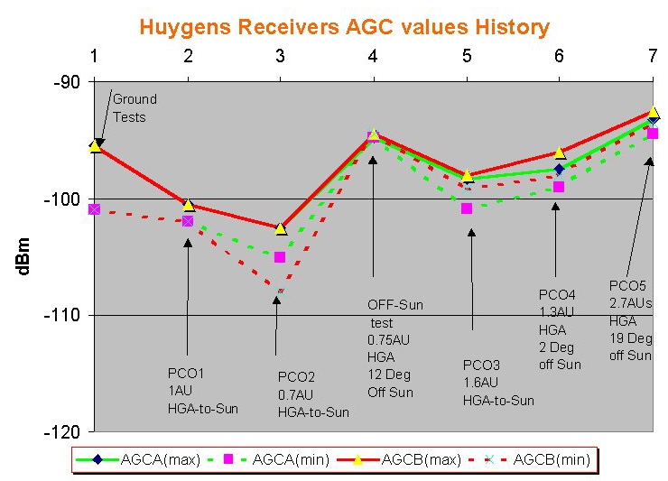 The AGC level during the 5th checkout varied between about -92 and -94 dBm which is the best value ever obtained to date.