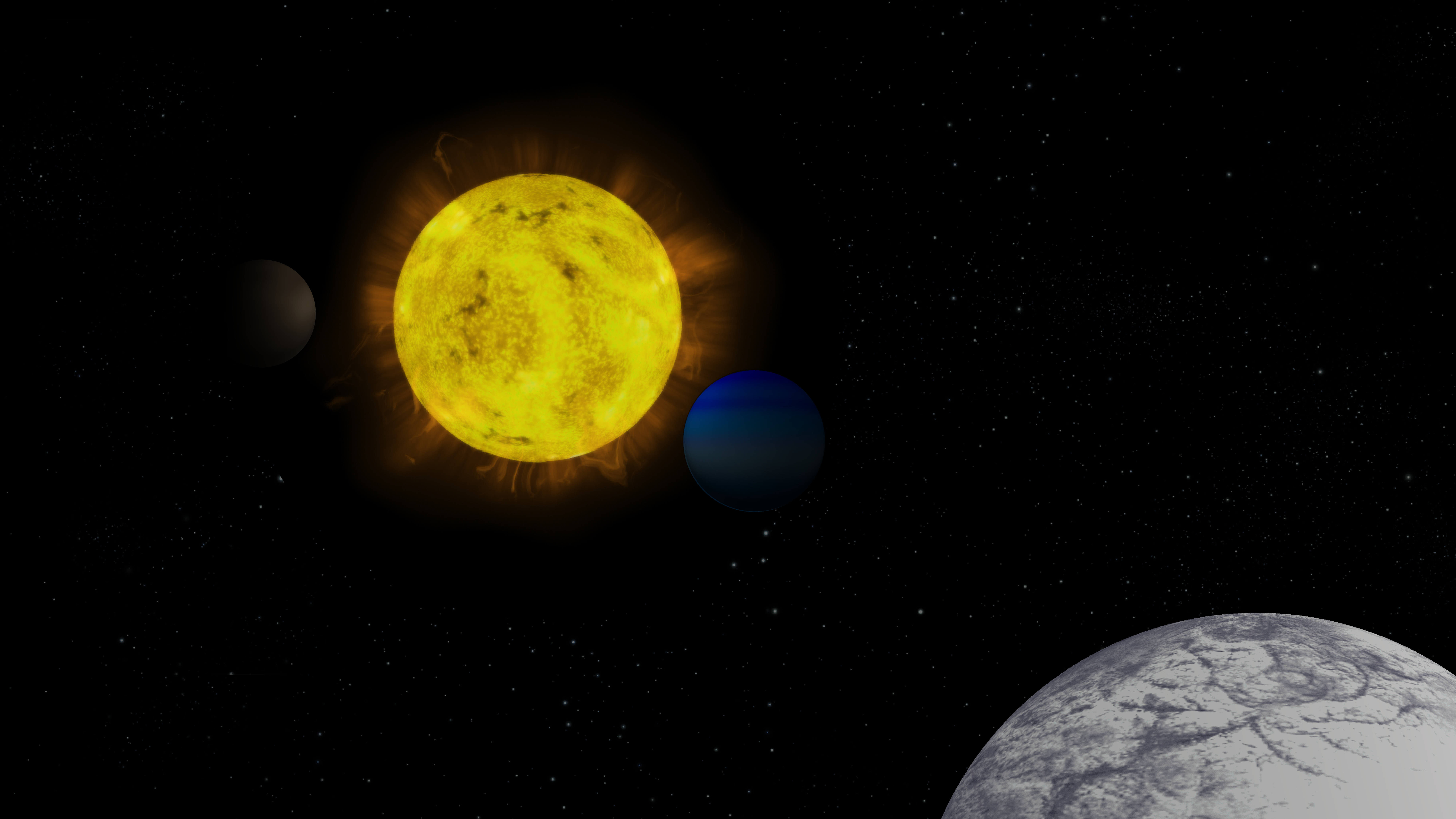 Artist's impression of an exoplanet system featuring three planets imagined as two gaseous planets orbiting close to the star – perhaps 'hot-Jupiters' – and an icy world further away (foreground).