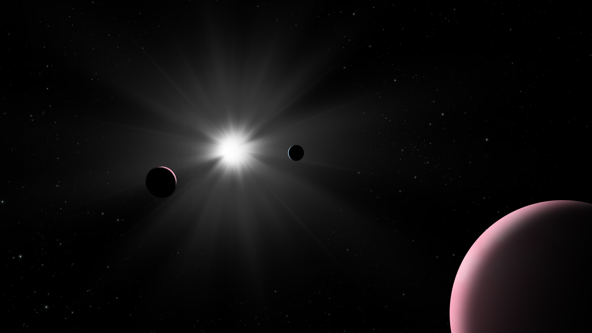 This artist's impression shows the Nu2 Lupi planetary system, which was recently explored by ESA's exoplanet watcher CHEOPS (CHaracterising ExOPlanet Satellite).