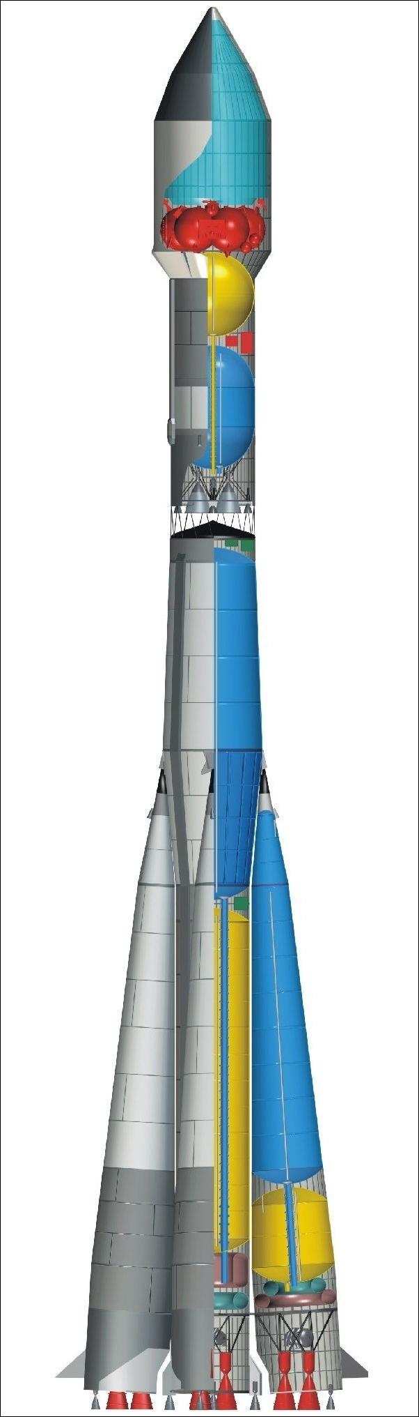 Depicts: Cutaway diagram of Soyuz-Fregat launch vehicle