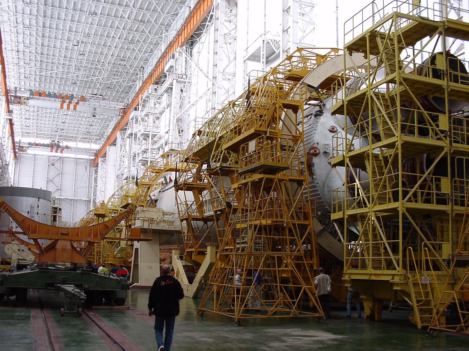 Part of the ESA/Dornier (DSS) team got the chance to visit the final integration area of the Buran shuttle on its Energia launcher. Buran and Energia flew 10 years ago, but the programme stopped in 1989 with the introduction of 'perestroika'.