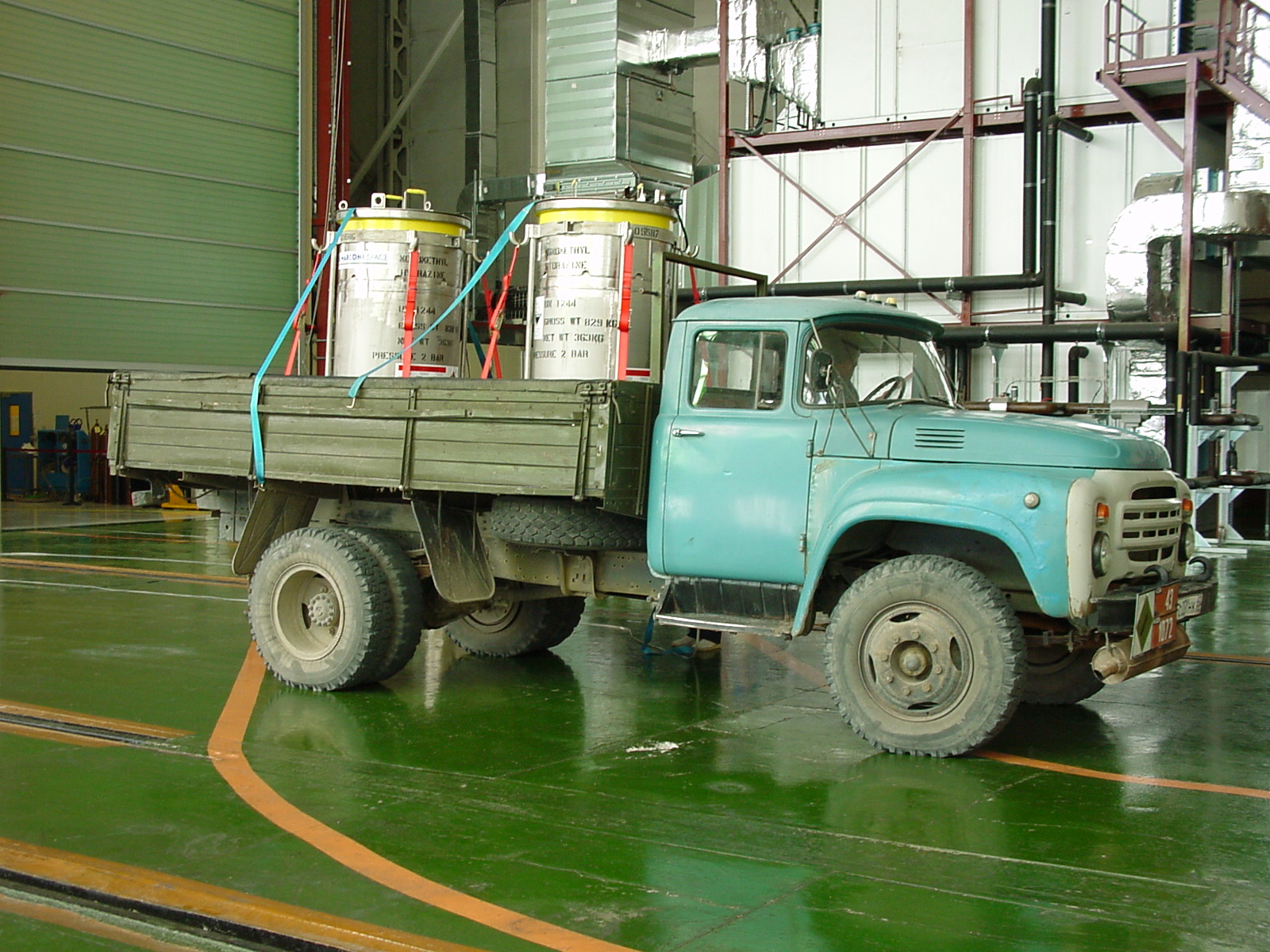 The truck with the MMH (monomethylhydrazine) containers for fuelling of the spacecraft.