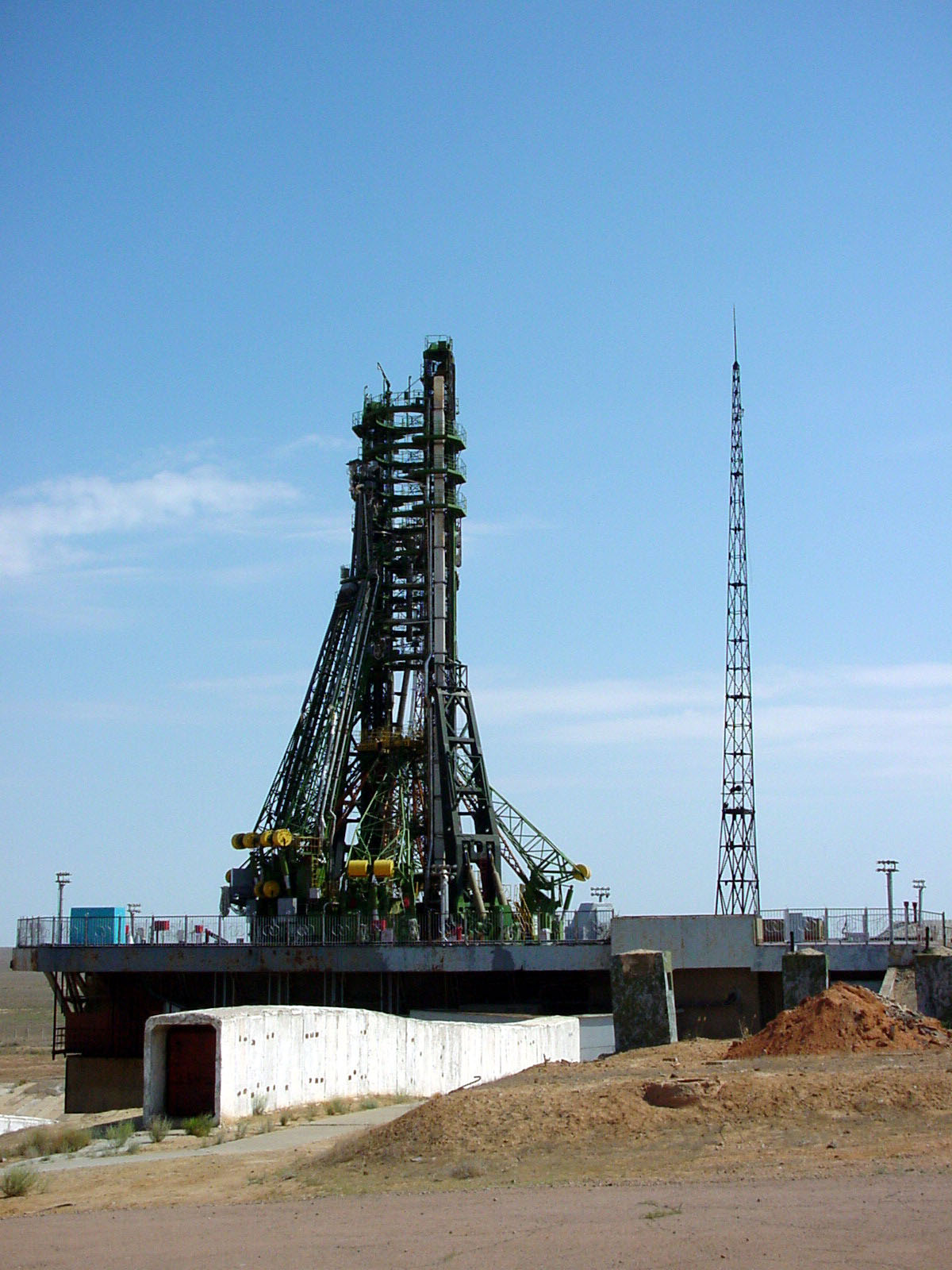 The launch pad tower at Baikonur on the day of the installation of the launch simulator.