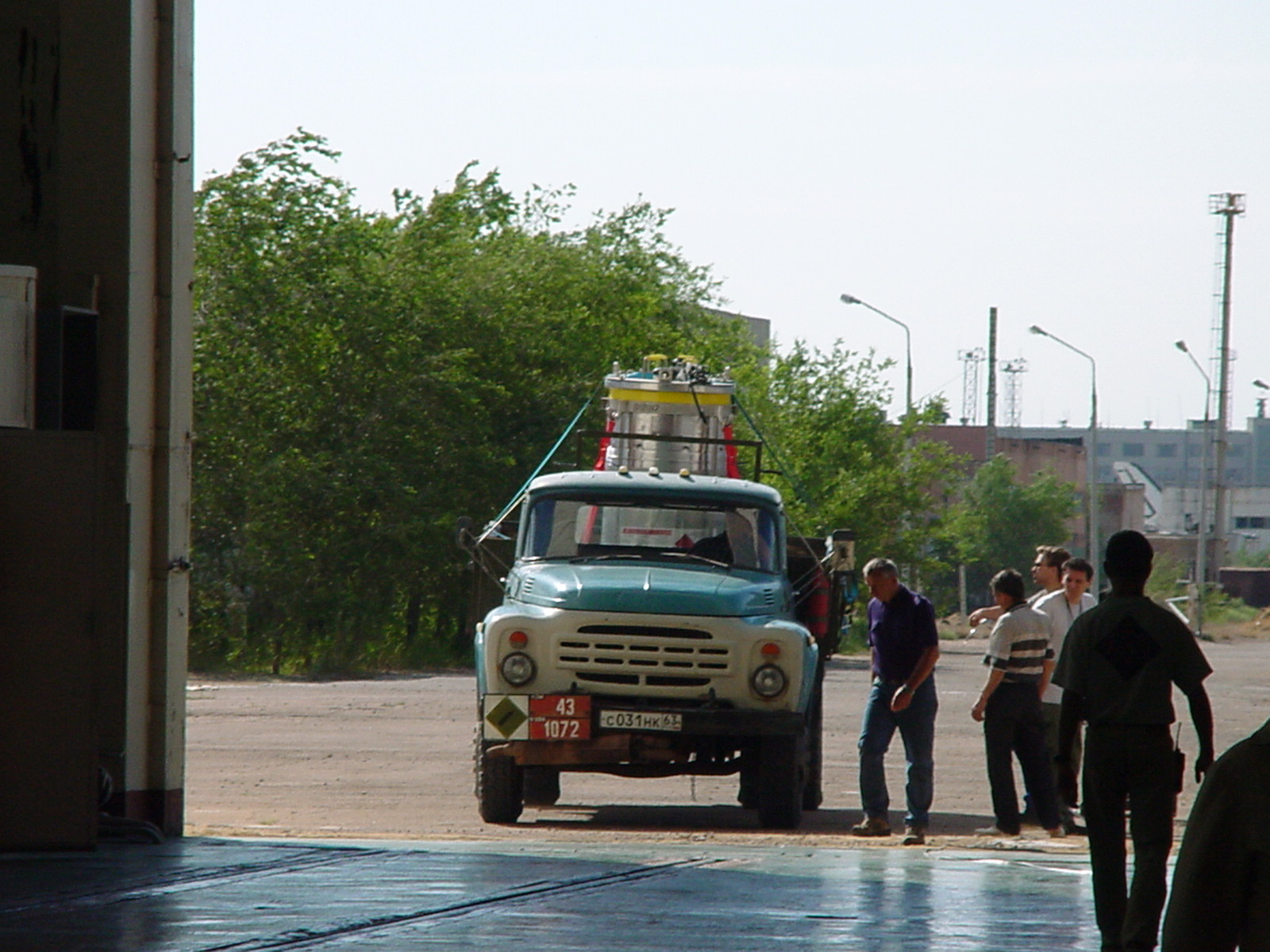 Arrival of the truck with the MMH (monomethylhydrazine) containers for fuelling of the spacecraft.