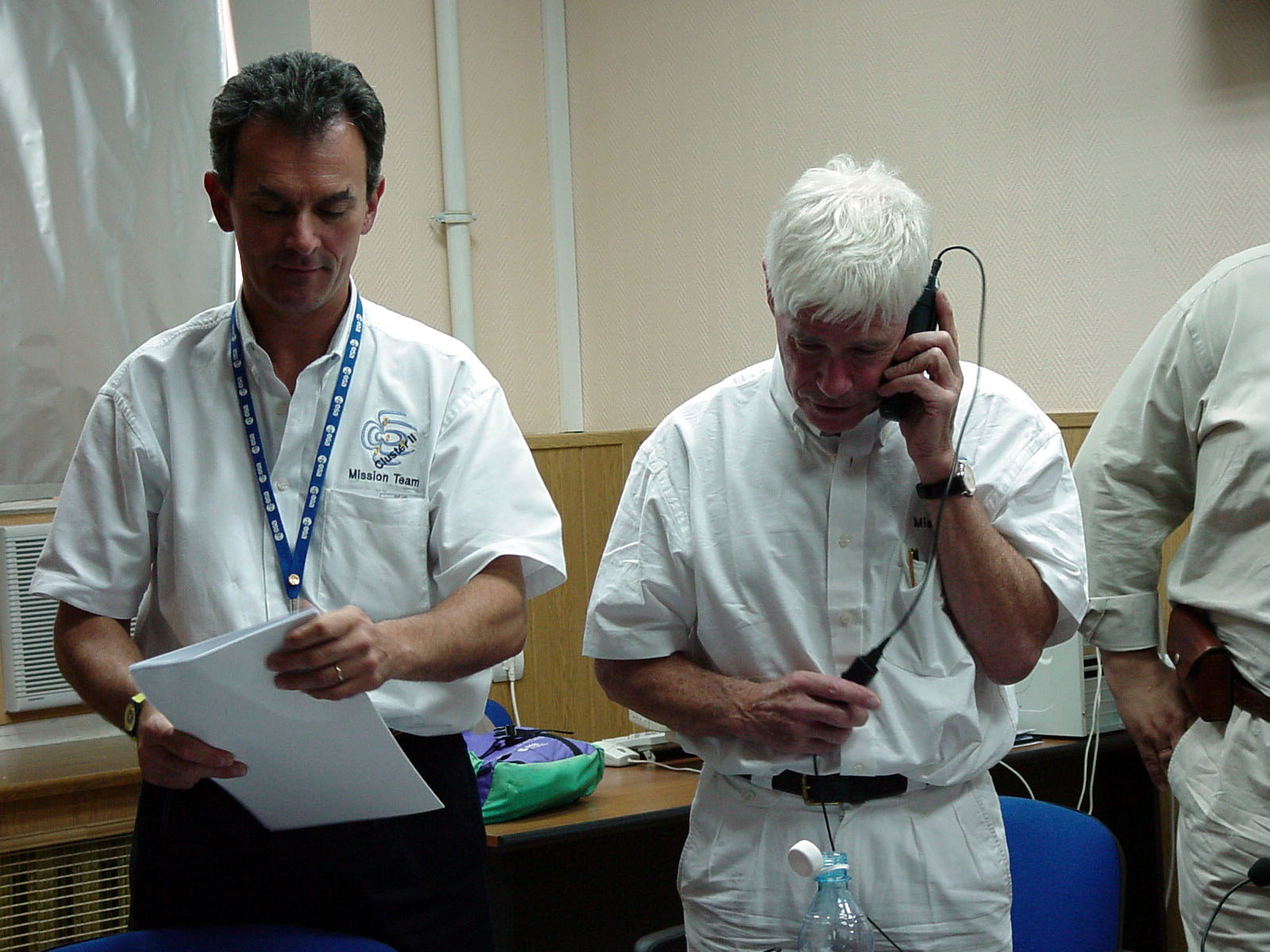 Alberto Gianolio (Cluster II deputy project manager) and Professor Roger Bonnet (ESA Director of Science).