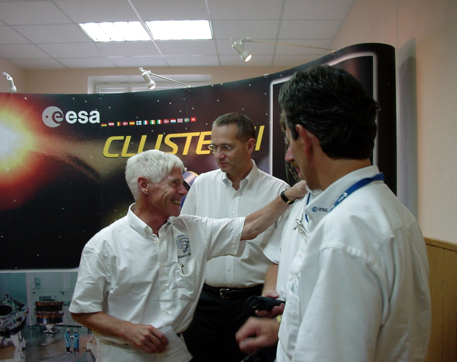 Professor Roger Bonnet after his television speech following the launch of the second Cluster pair.