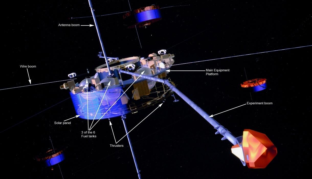 Cutaway diagram of one of the Cluster spacecraft, showing its main structural features.