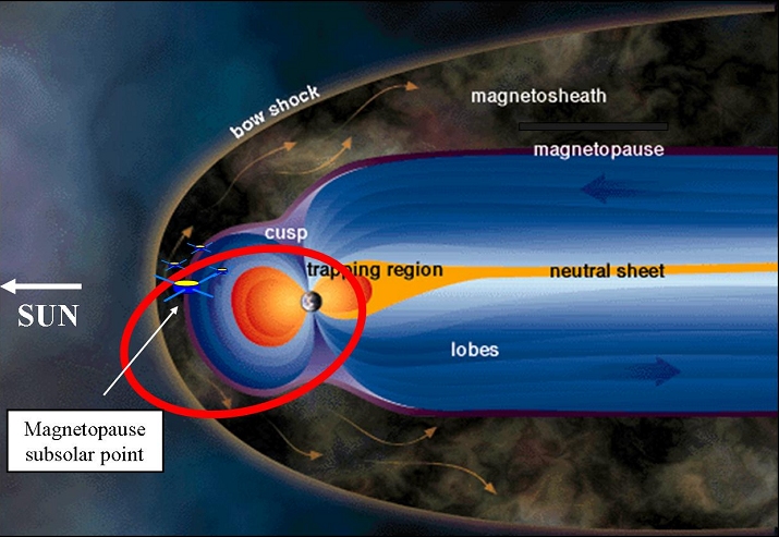 Sketch of the Earth's magnetosphere, with the Cluster orbit indicated by the red ellipse.