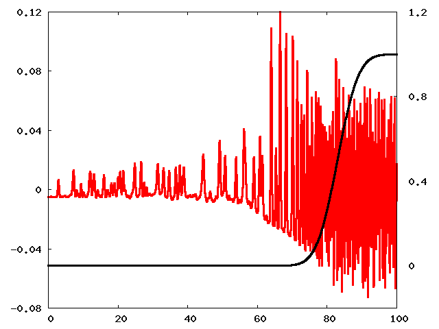 This movie shows a simulation of the electric field of an electrostatic zonal flow (red curve) at the Earth's magnetopause boundary (black curve: plasma density profile).