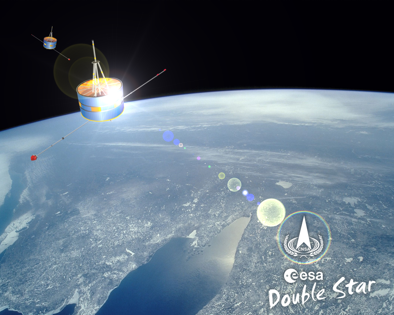 Date: 12 May 2005 Satellite: Double Star Depicts: Artist's impression of the two Double Star spacecraft TC-1 and TC-2 in orbit. Copyright: ESA/CNSA Show in archive: true