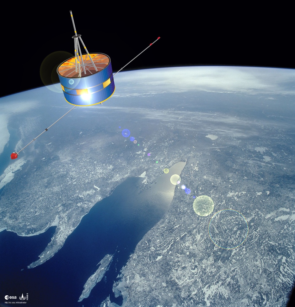 Depicts: Artist's impression of a Double Star spacecraft in orbit