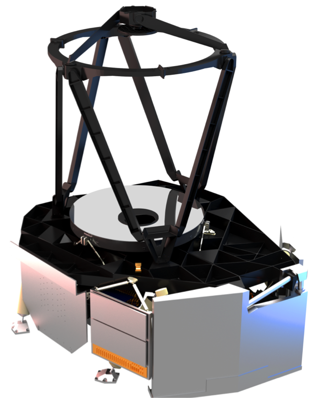 The Euclid spacecraft will carry a payload module (depicted in this drawing) with a 1.2-m-diameter telescope and two state-of-the art scientific instruments: a visible-light camera and a near-infrared camera/spectrometer.