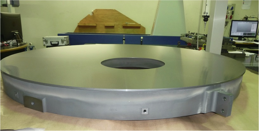 The mirror is made of silicon carbide (SiC) and will be covered with a CVD (Chemical Vapour Deposition) cladding before polishing. A silver coating for the 550-2100 nm spectral range will later be deposited on the highly polished surface.