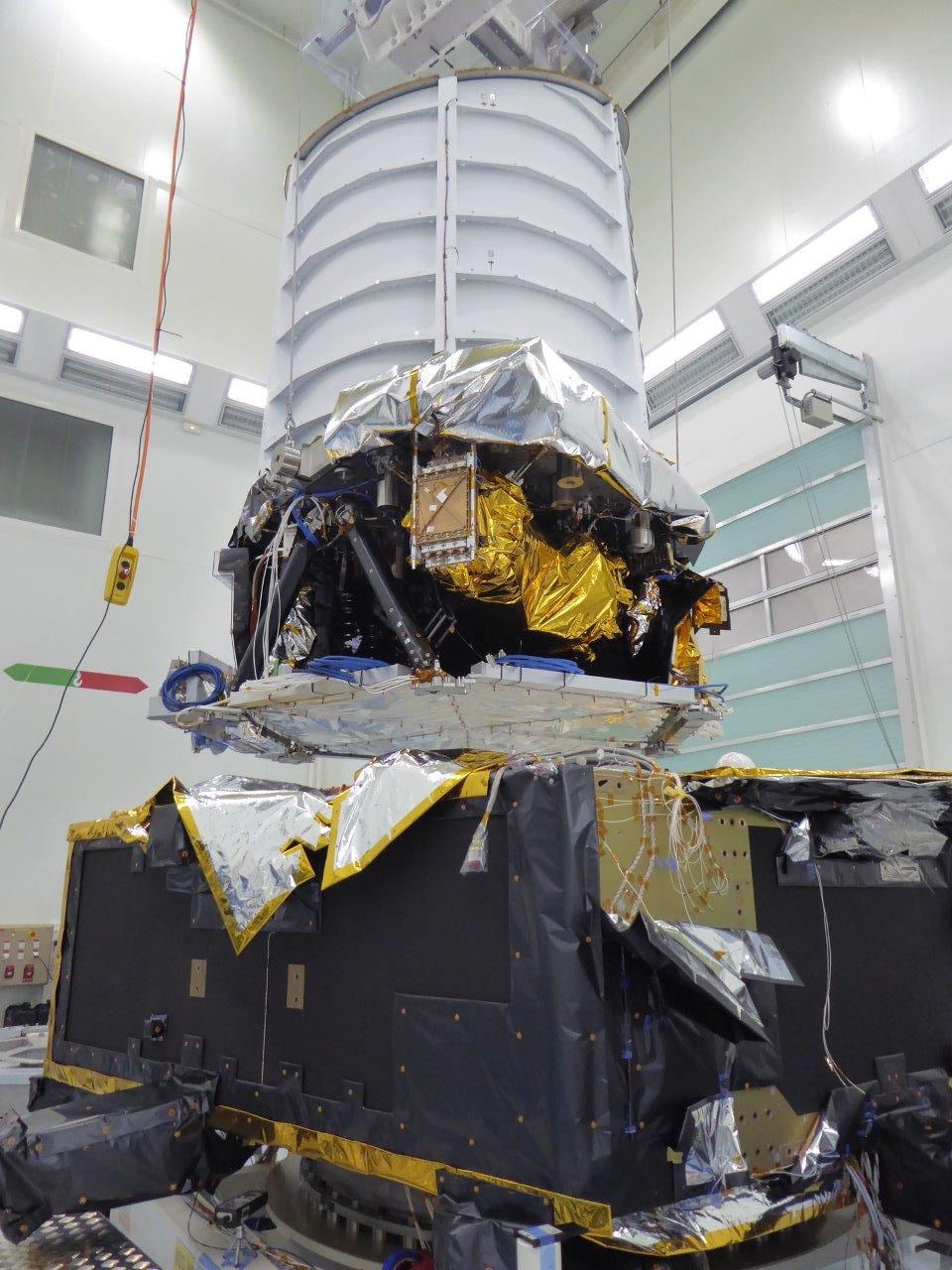 The Structural and Thermal Model (STM) of the Euclid satellite during integration at the Thales Alenia Space premises in Cannes, France.