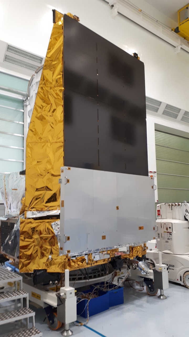 The integrated Structural and Thermal Model (STM) of the Euclid satellite at the Thales Alenia Space premises in Cannes, France.