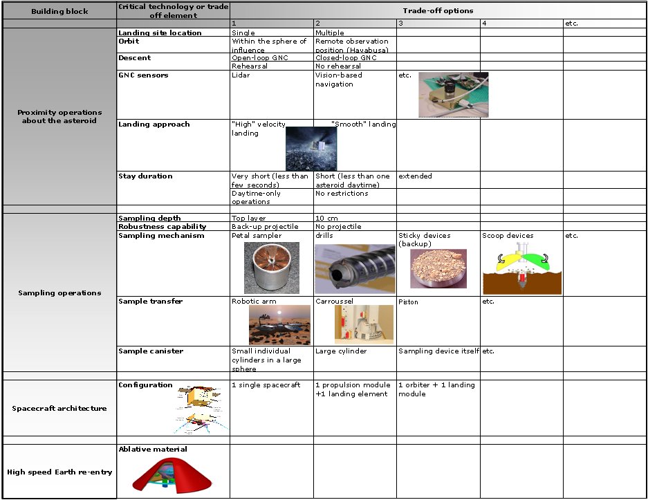 A non-exhaustive list of the most critical technologies and associated trade-off which were addressed in the frame of the Near Earth Asteroid Sample Return Technology Reference Study (NEA-SR TRS).