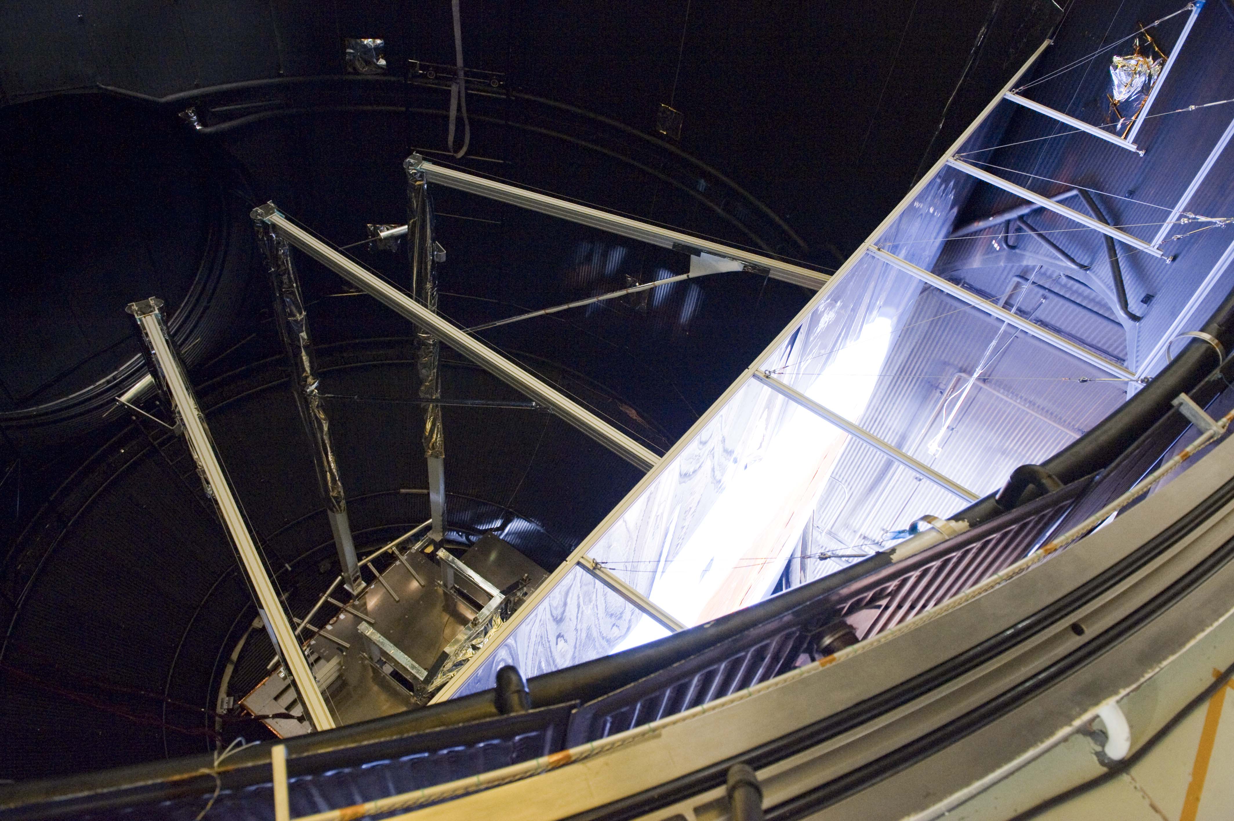 Depicts: Deployable sunshield QM inside the Large Space Simulator