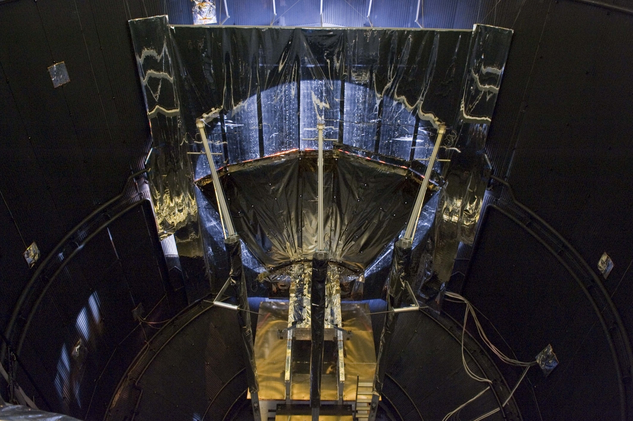 Depicts: Deployable sunshield QM inside the Large Space Simulator