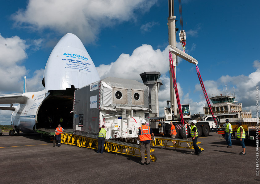 Unloading Gaia at Félix Eboué airport, 23 August 2013