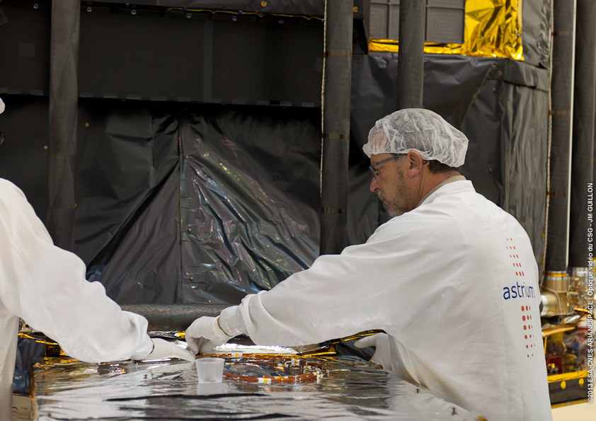 Prior to transport, the multi-layer insulation (MLI) of the DSA had been removed for inspection and storage. Once in Kourou, the DSA had to be 'reconstructed' and tested.