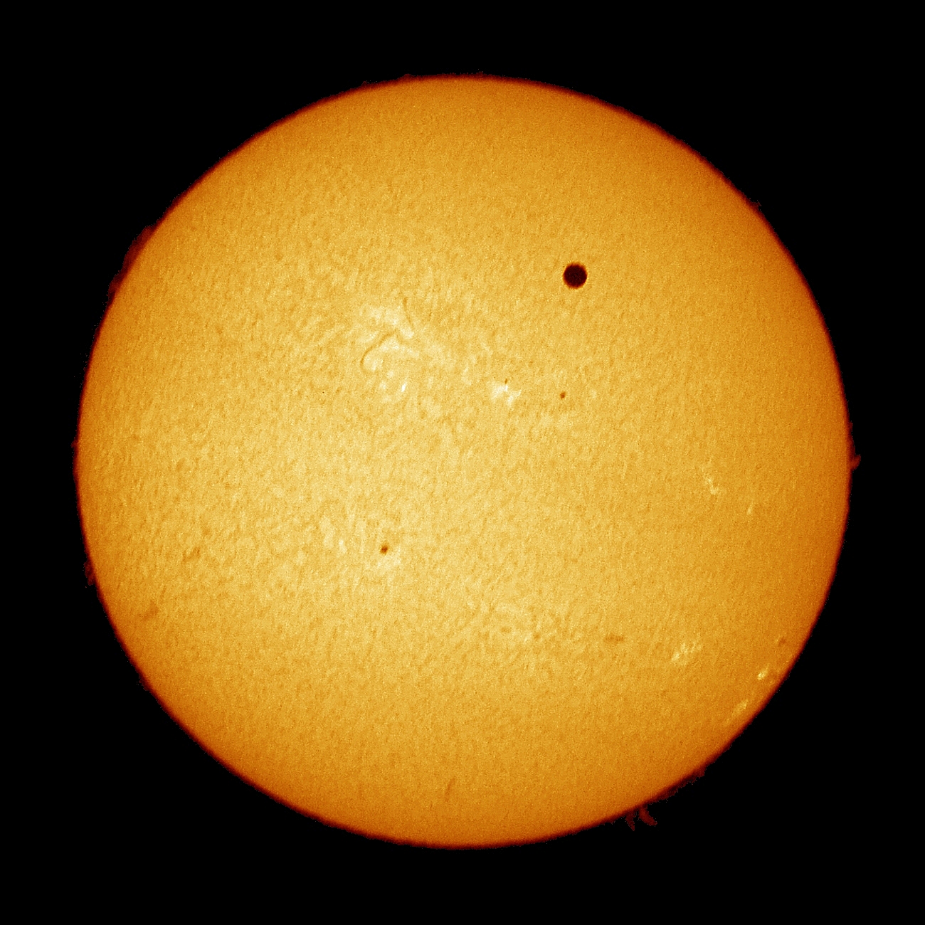 Photo of the June 2012 transit of Venus, taken using an Hα filter, at Longyearbyen, in the Svalbard Islands, Norway.