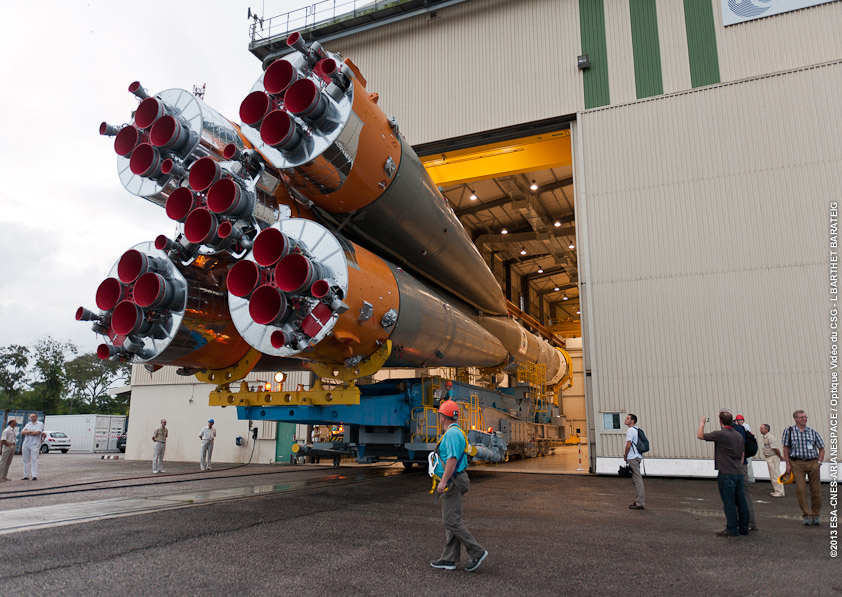 14 December 2013: The Gaia launch vehicle (VS06) is rolled out from the processing building, known as the MIK, on its way to the launch pad.