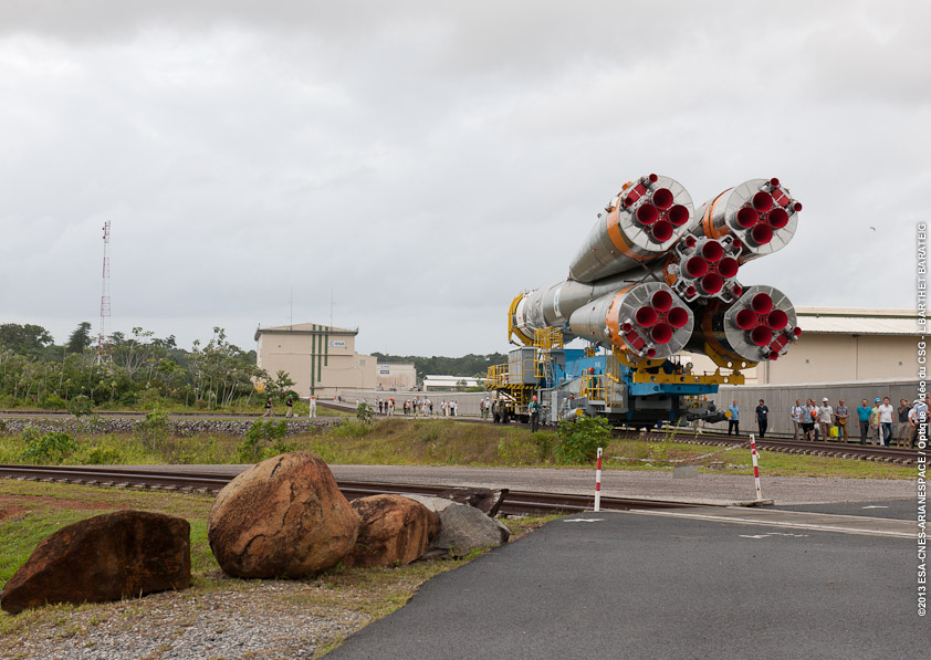 14 December 2013: The Gaia launch vehicle (VS06) is transferred from the processing building, known as the MIK, to the launch pad.