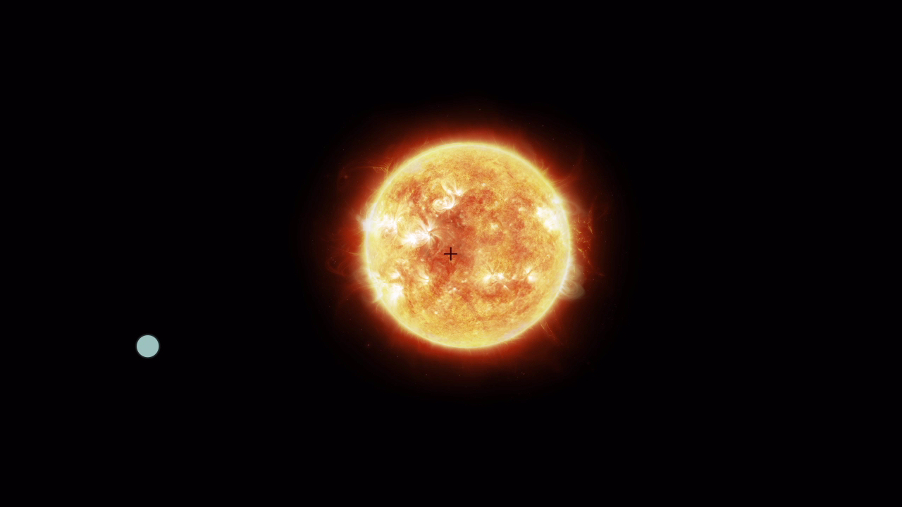 The presence of a planet orbiting a star is reflected in the star's motion. In fact, both the star and the planet orbit the common centre of mass. Since most of the mass in the star-planet system is concentrated in the star, the centre of mass is located within the star (marked with a cross).