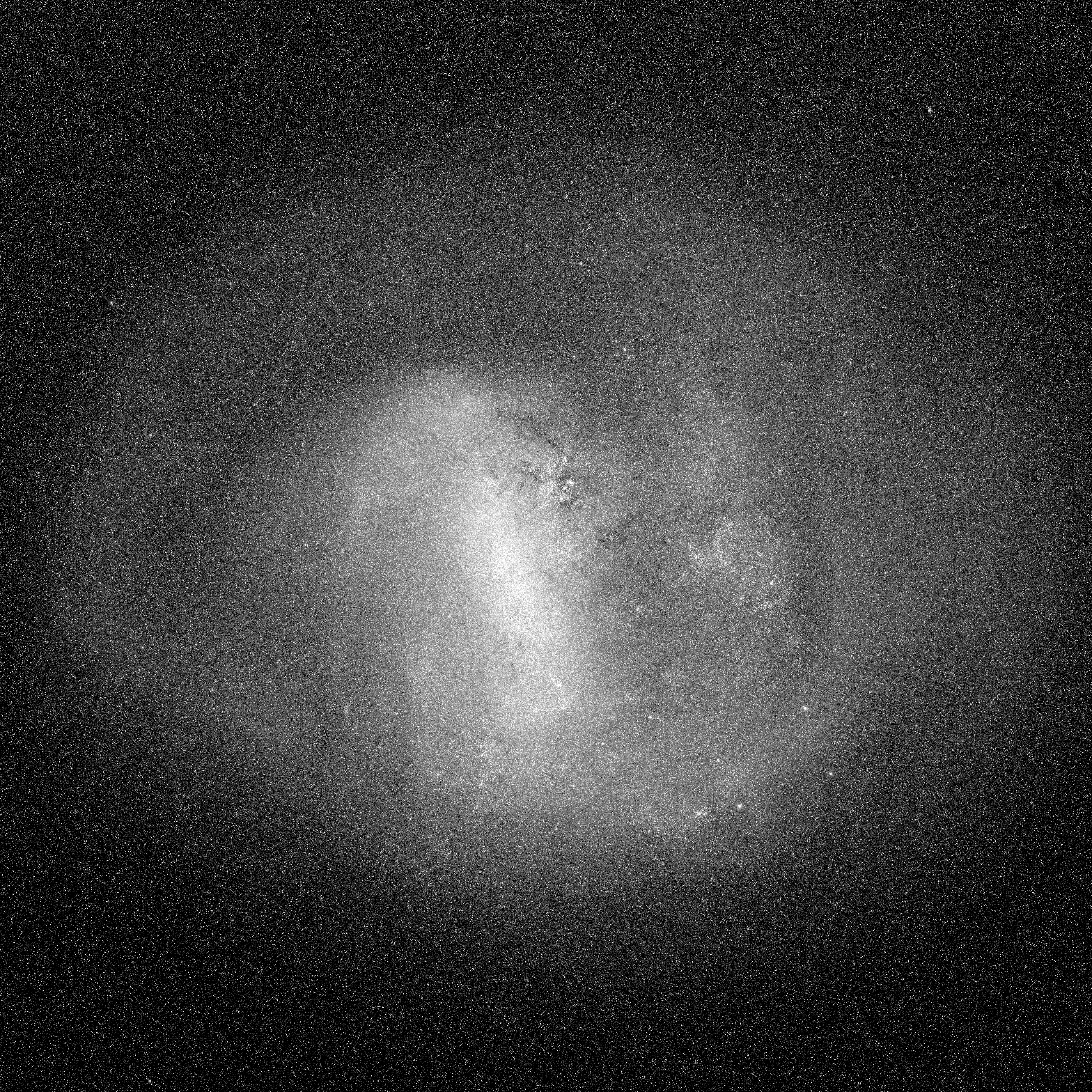 The Large Magellanic Cloud (LMC), one of the nearest galaxies to our Milky Way, as viewed by ESA's Gaia satellite after its first 14 months of operations. This view is not a photograph but was compiled by mapping the total amount of radiation, or flux, recorded by Gaia in each pixel of the image.