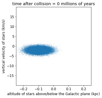 This graph shows the altitude of stars in our Galaxy above or below the plane of the Milky Way against their velocity in the same direction, based on a simulation of a near collision that set millions of stars moving like ripples on a pond.