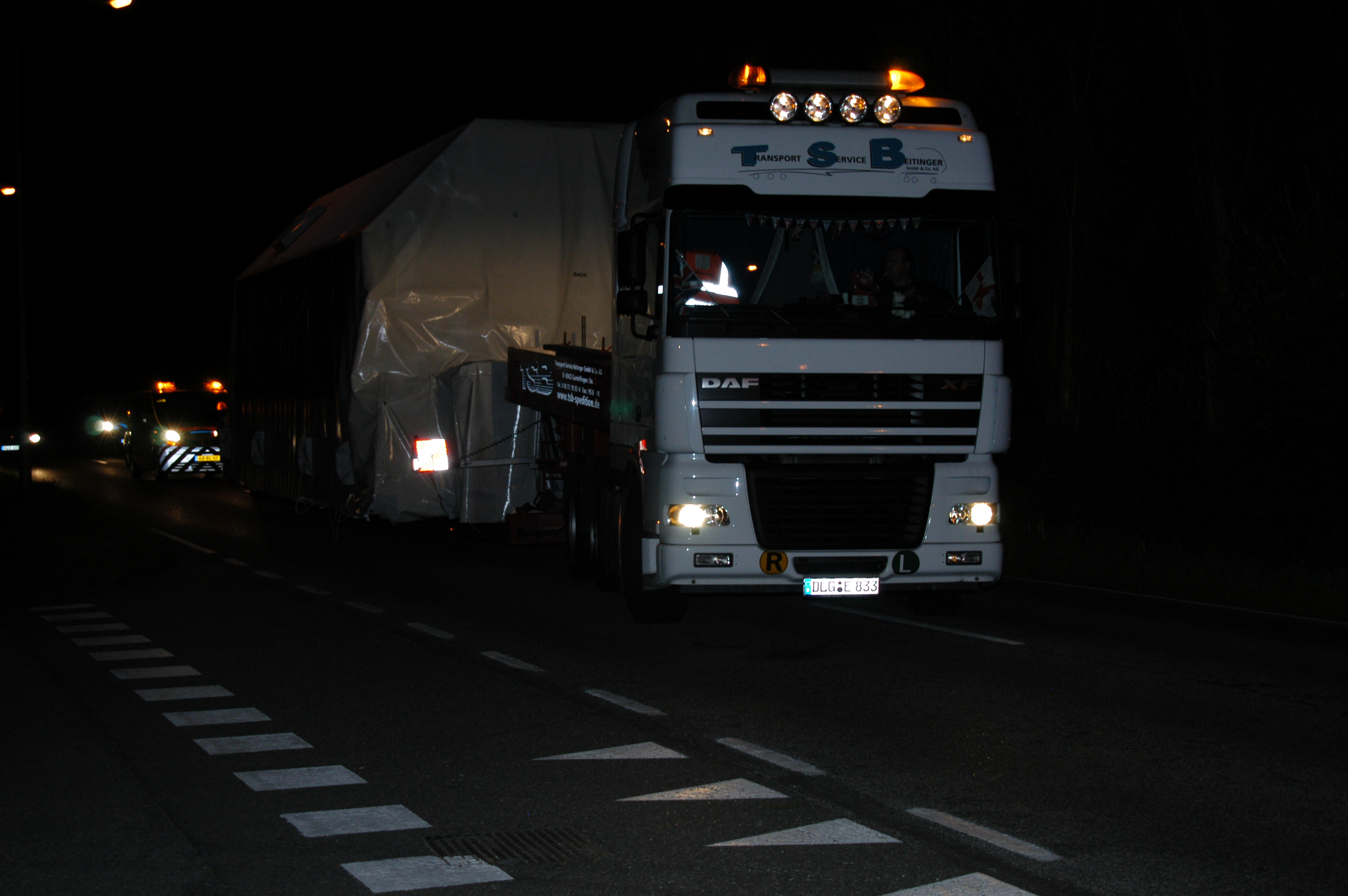 The Herschel Payload Module arrives at ESTEC after a short journey across Germany and Holland.