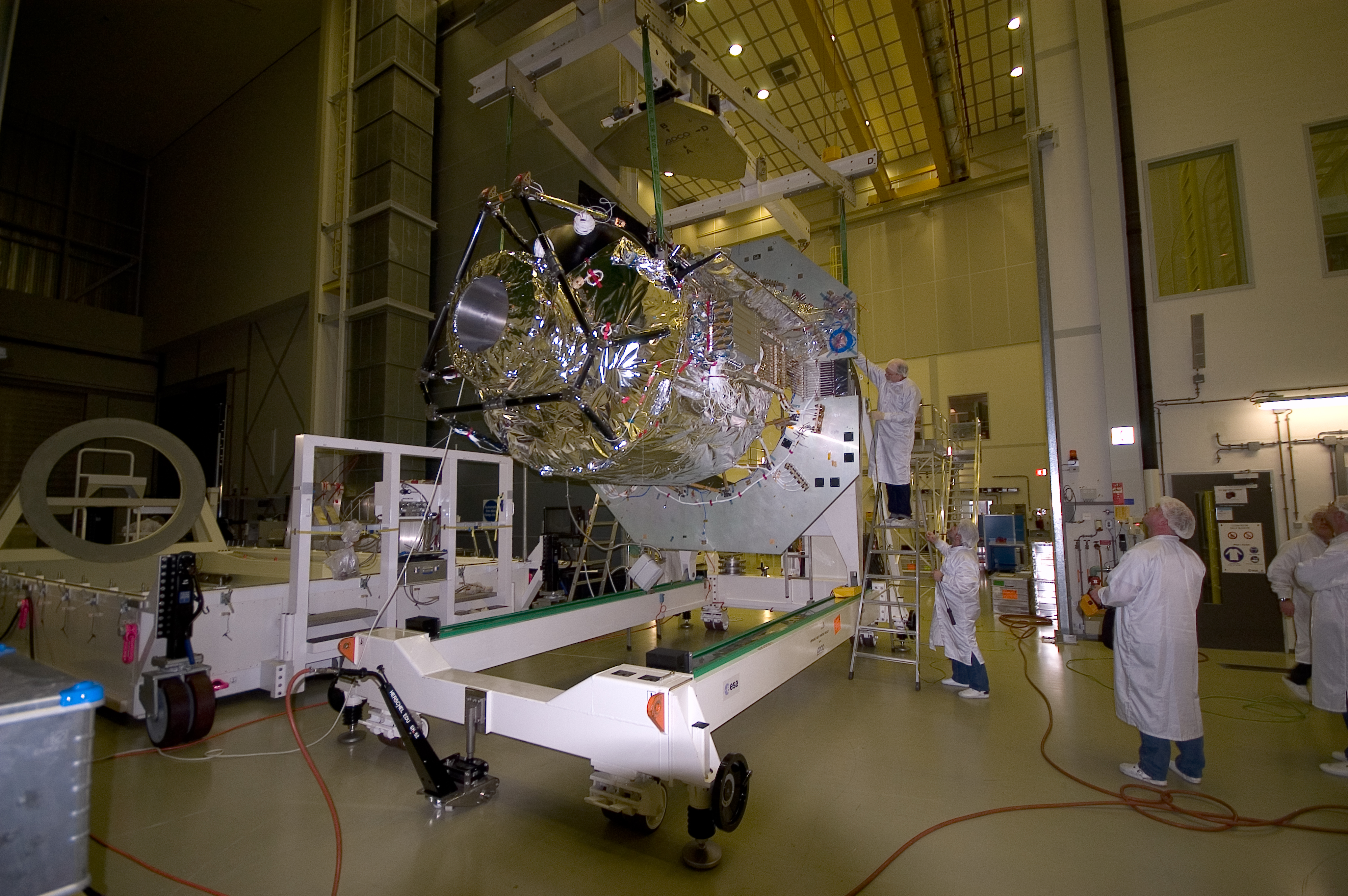 Date: 08 March 2006 Satellite: Herschel Depicts: Herschel is hoisted up from ground support equipment Location: ESTEC, Noordwijk, The Netherlands Copyright: ESA Show in archive: true