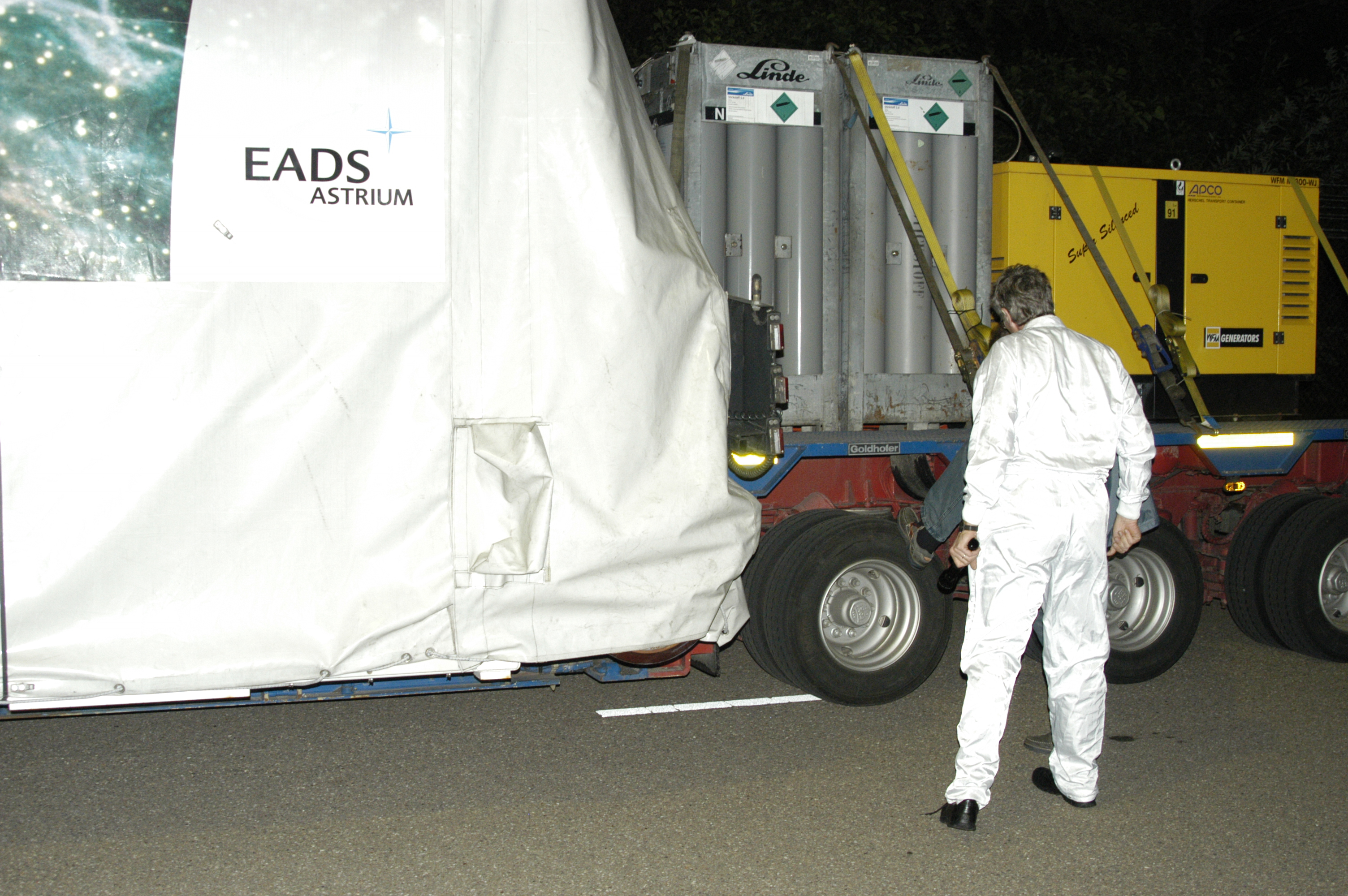 Date: 29 August 2006 Satellite: Herschel Depicts: Inspection of the transport at the gate Location: ESTEC, Noordwijk Copyright: ESA Show in archive: true