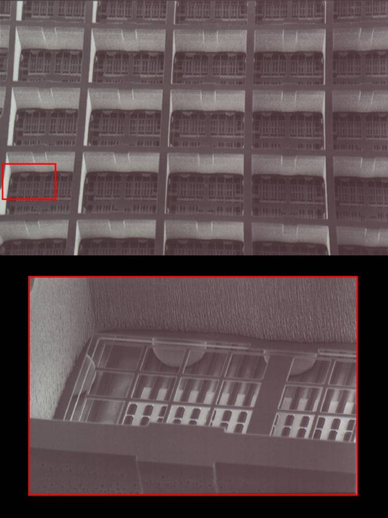 Scanning electron microscope (SEM) micrograph of part of one PACS 16 × 16 bolometer matrix.