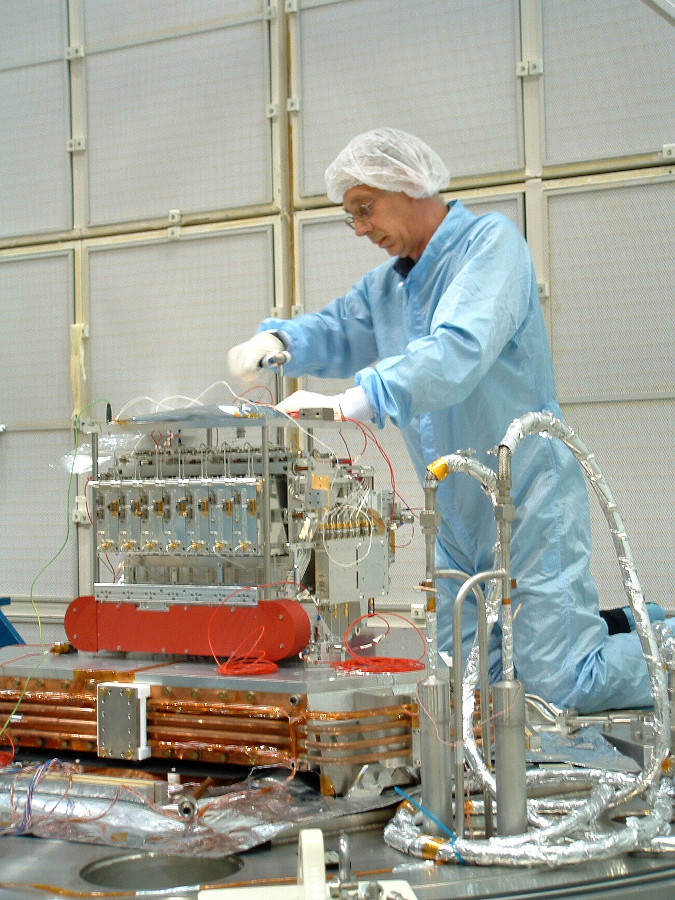 Date: 19 September 2007 Satellite: Herschel Depicts: HIFI on the vibration test table Copyright: SRON Show in archive: true