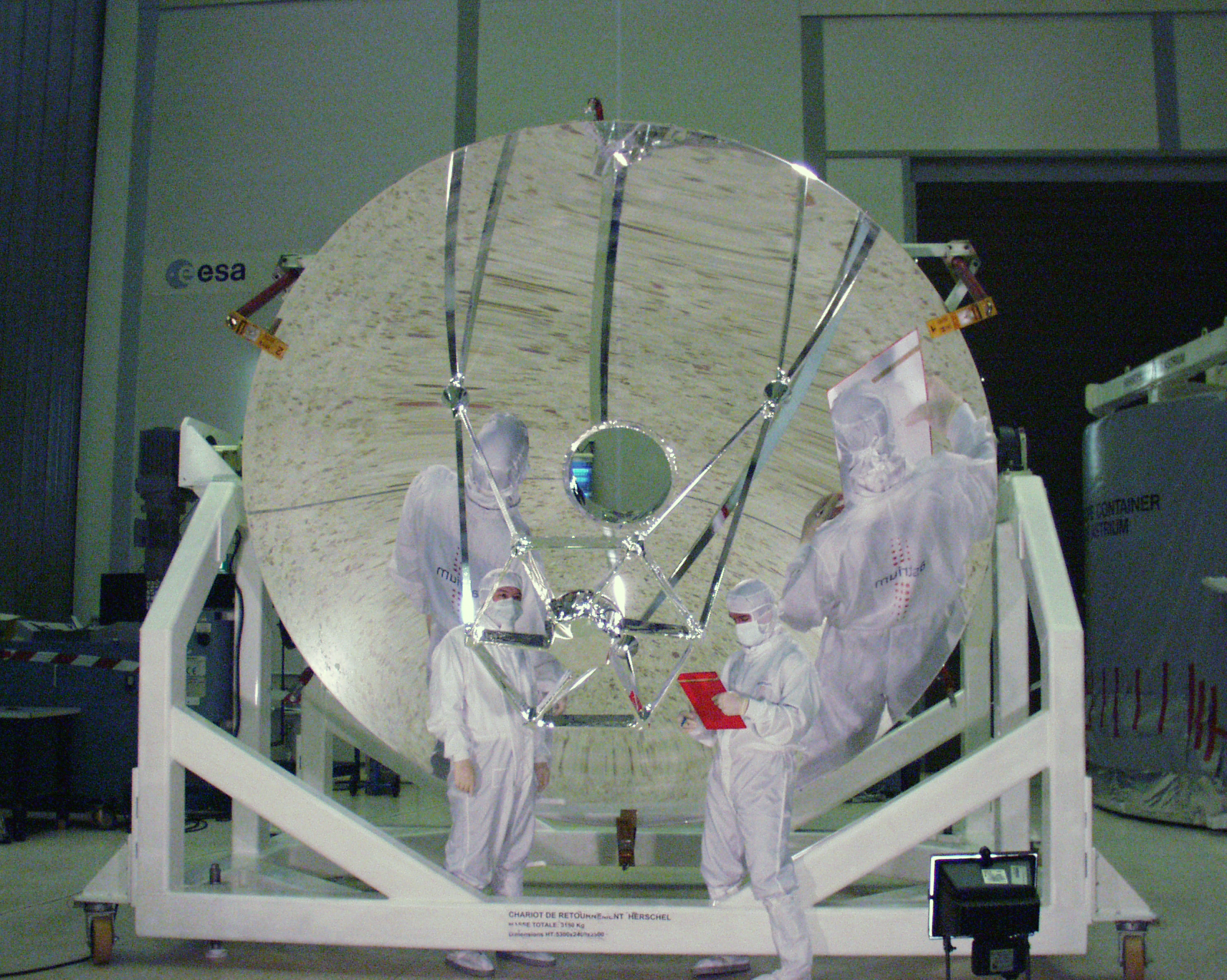 Cleaning and inspection activities of the Herschel telescope flight model.