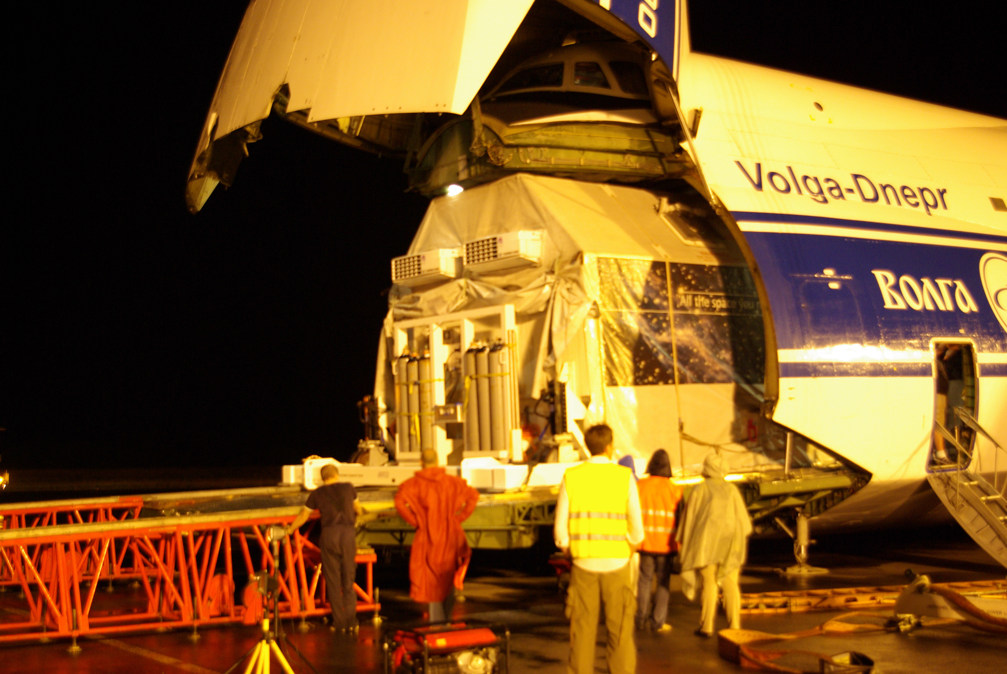 ESA Science & Technology - Removing Herschel container from the Antonov cargo airplane