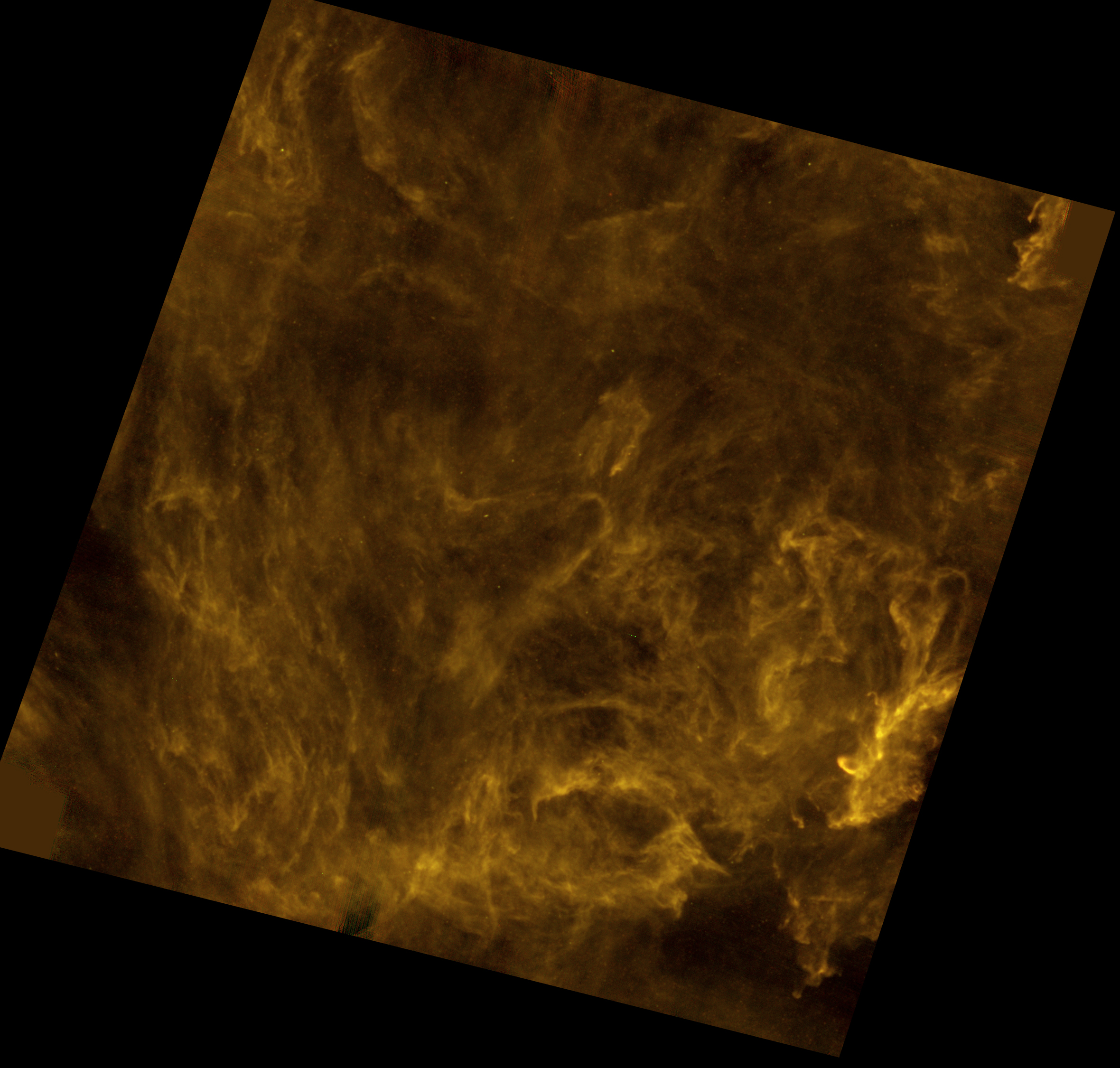 This colour-composite image of the Polaris Flare shows the extended filamentary structure of this quiescent cloud, located at a distance of about 490 light years, and characterised by little or no current star formation activity. A detailed study of this complex has revealed more than 60 filaments, 31 of which have been measured in detail. They all appear to have very similar widths, with a value of about 0.3 light years.